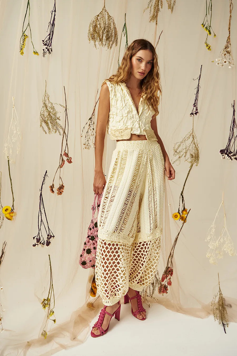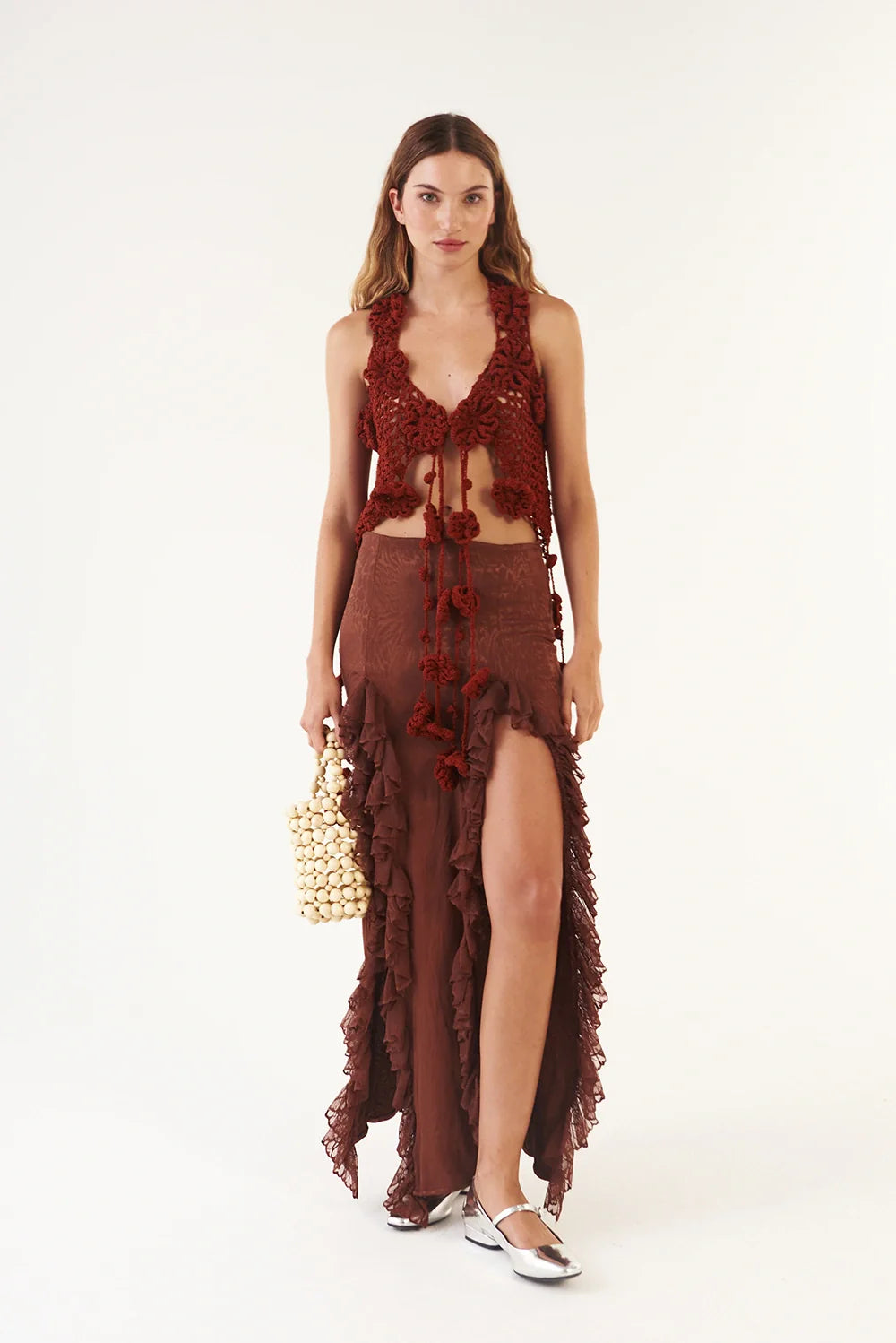 The Petal Affair Mesh Vest In Terracotta